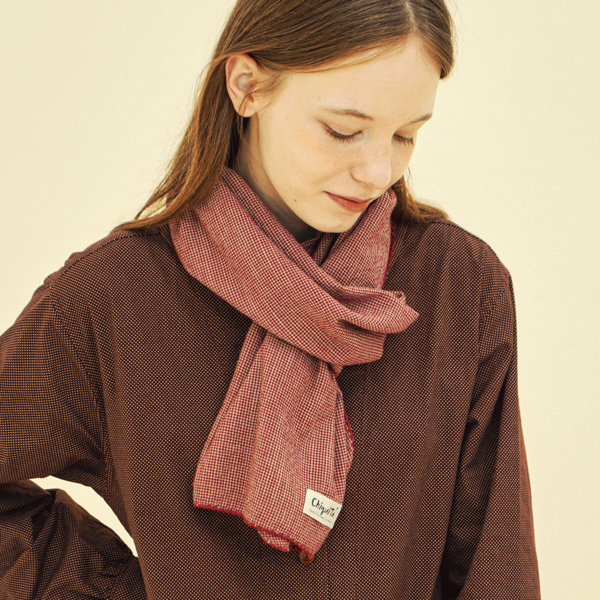 롱 스카프 (체크 코튼) 버건디 243701CBU