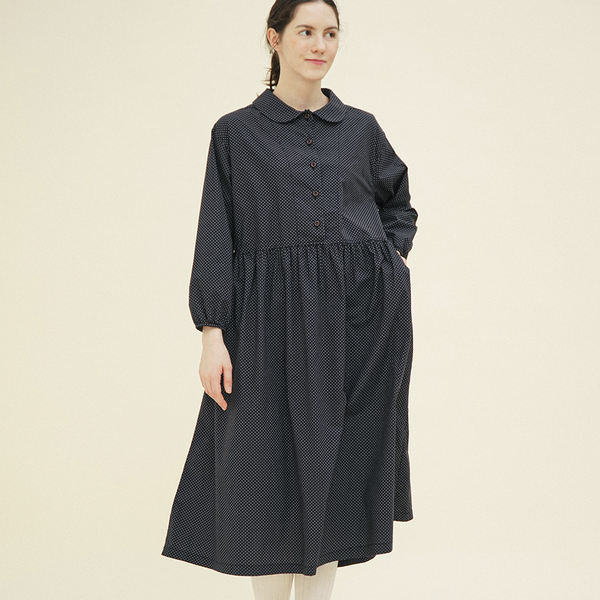 도트 퍼프 원피스 9부 블랙 251206OBK