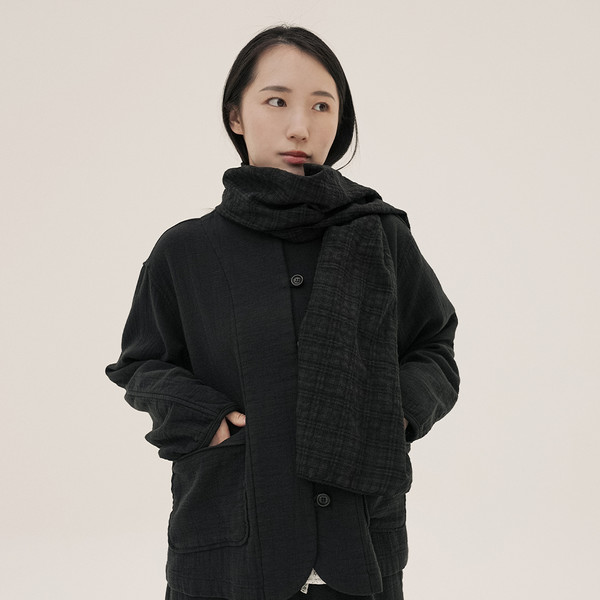 체크 코튼 롱 스카프 블랙 250810BK