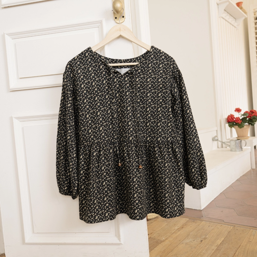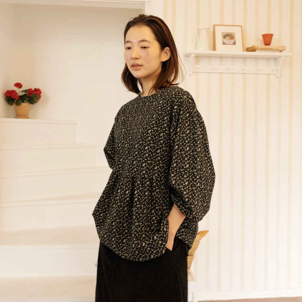 웜 코튼 투웨이 벌룬 블라우스 플라워 블랙