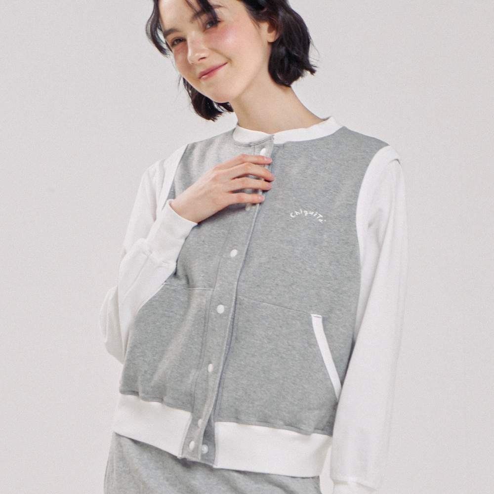 이중면 더블코튼 소재로 제작된 스웨트 베스트입니다. 쭈리보다 가볍고 탄탄하며, 안쪽 면이 부드러워 간절기에 쾌적하게 착용하기 좋습니다.
