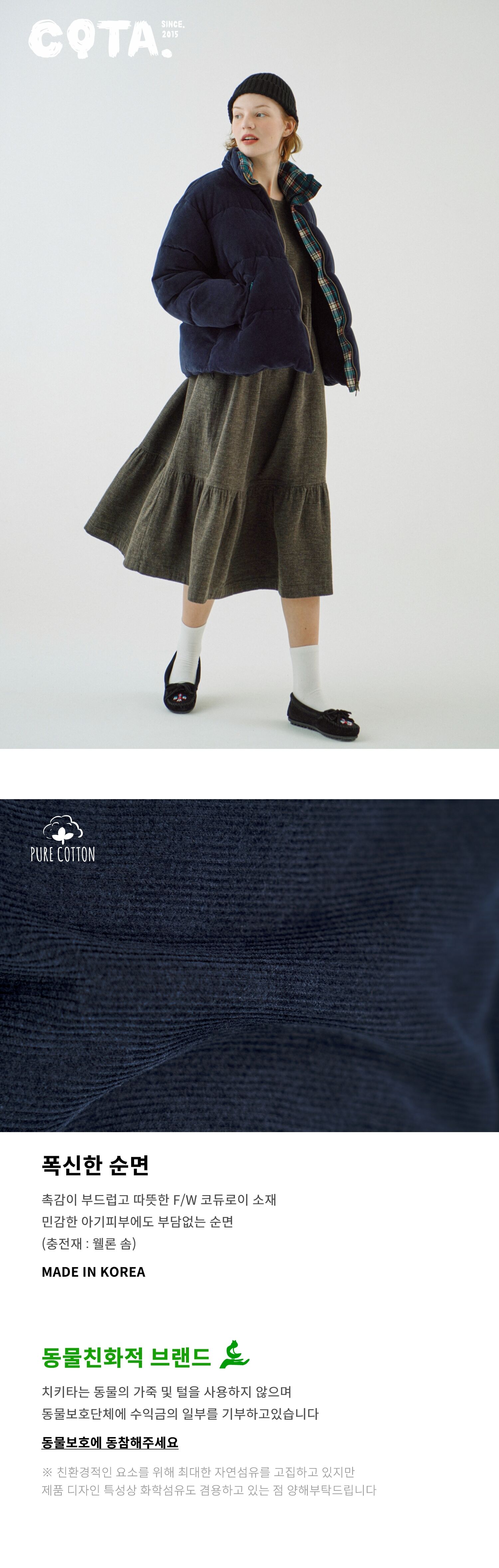 ㆍ혼용률 : (겉감,배색) 면 100% (충전재,안감) 폴리에스터 100%