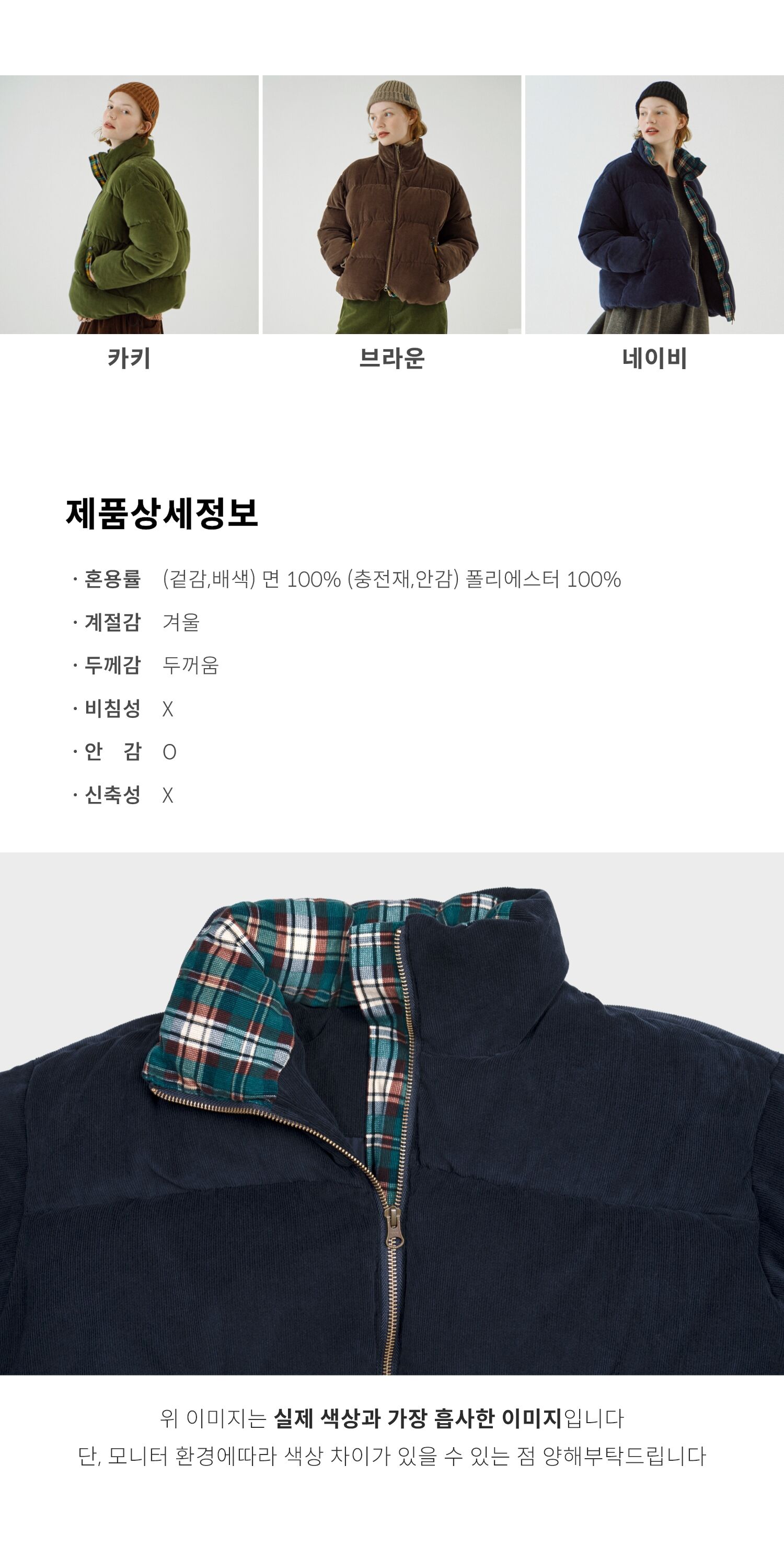 (겉감,배색) 면 100% (충전재,안감) 폴리에스터 100%