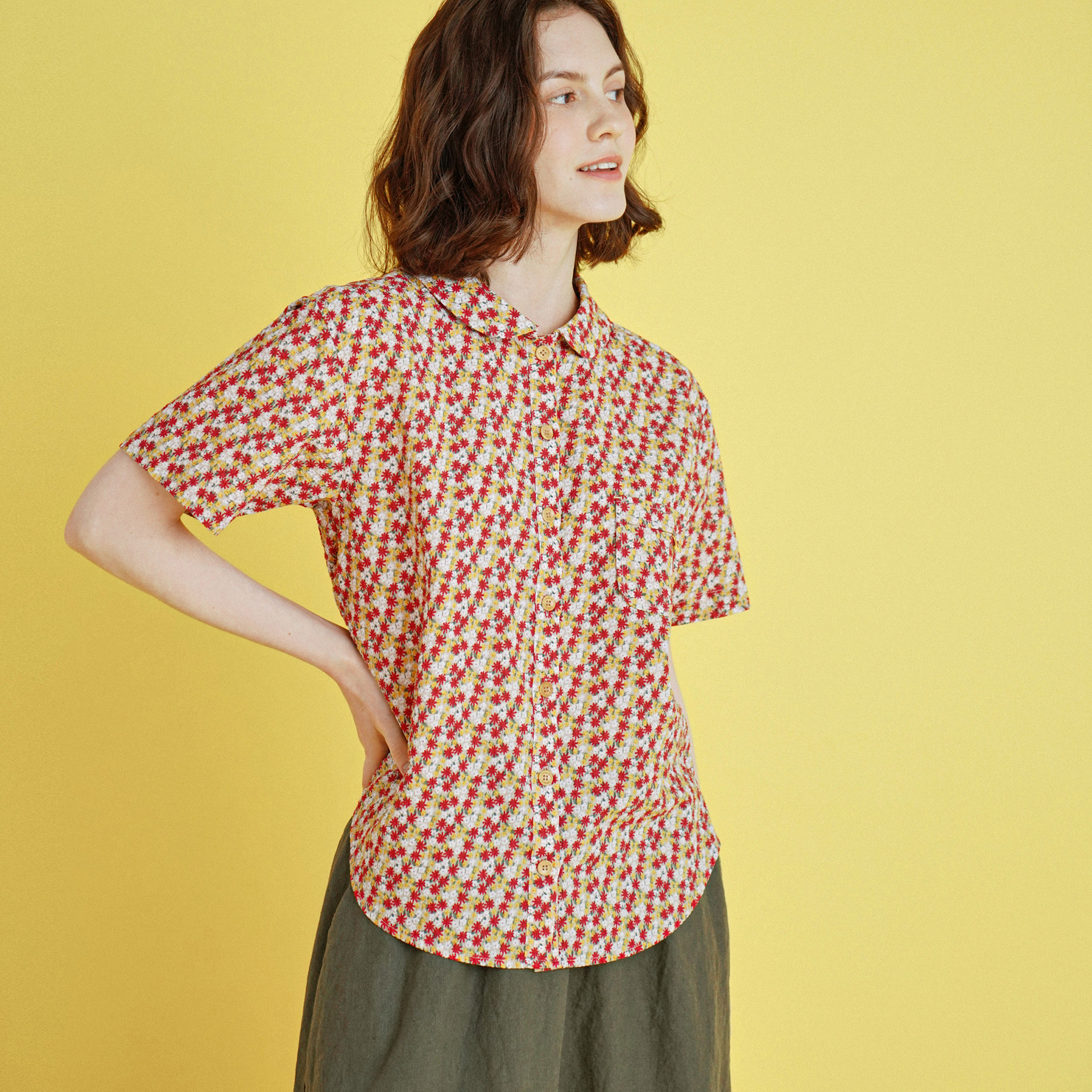 ㆍ기존 상품명 : 라운드 셔츠 4부 (플라워) 레드 232301FRD