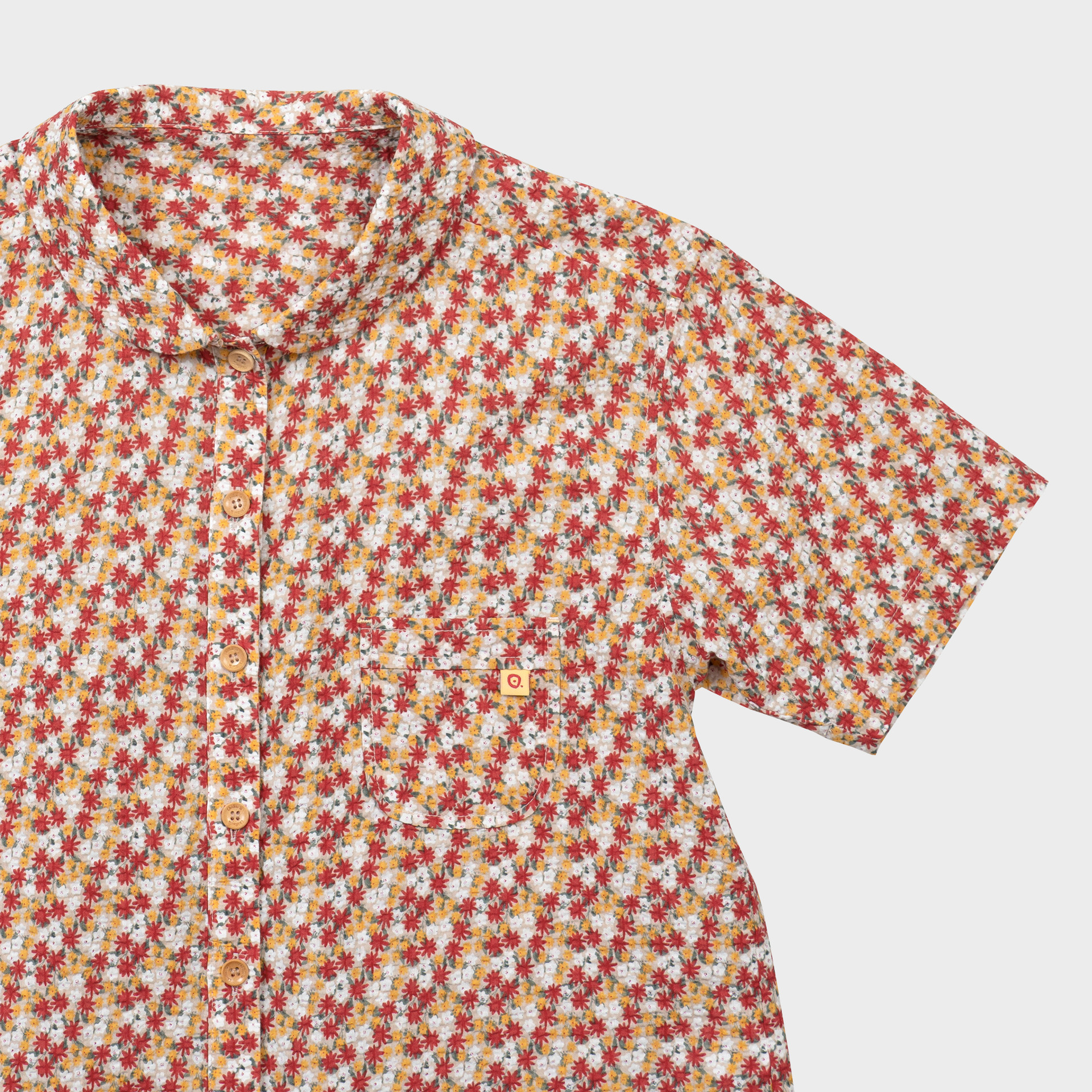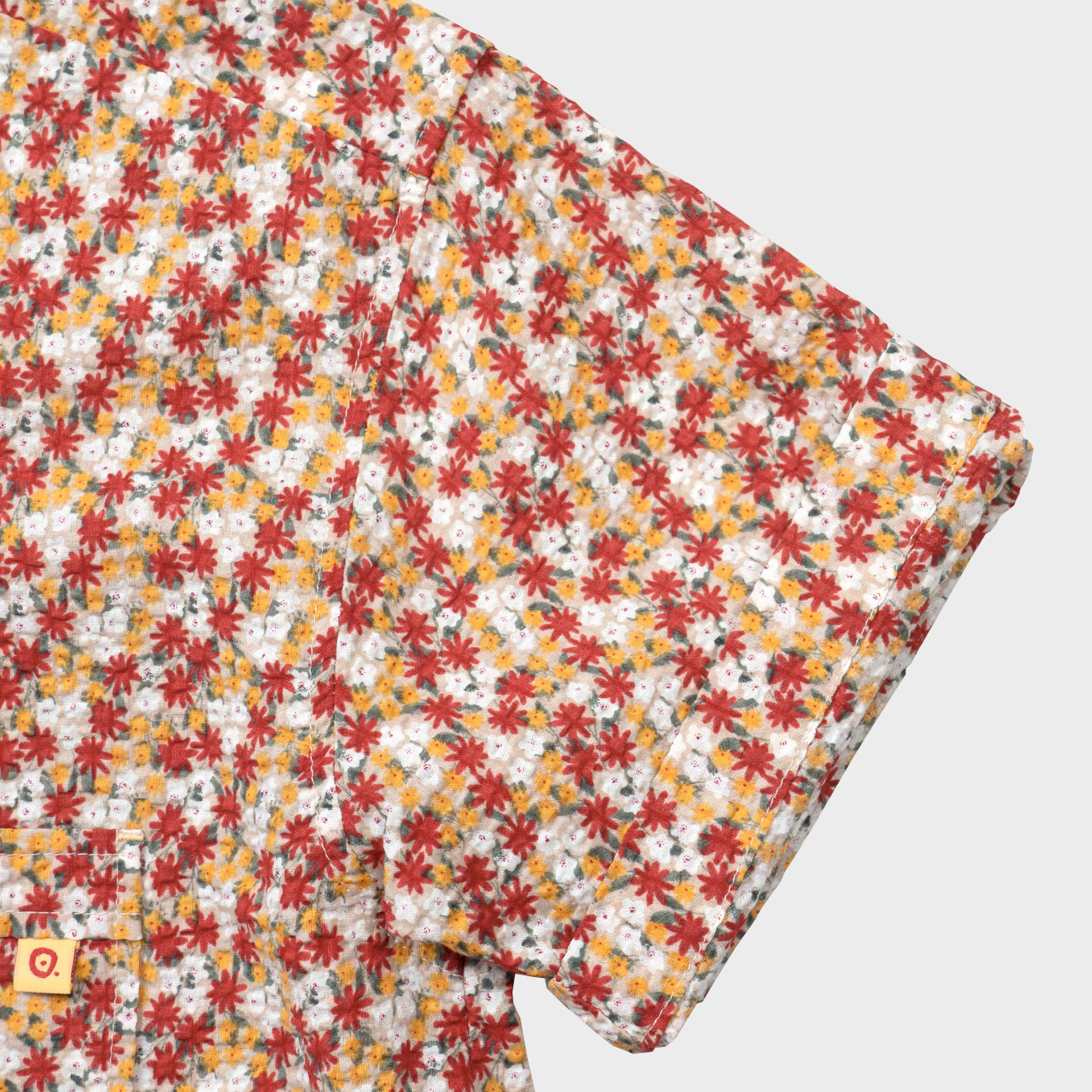 시어서커 라운드칼라 4부 셔츠 메이플 레드