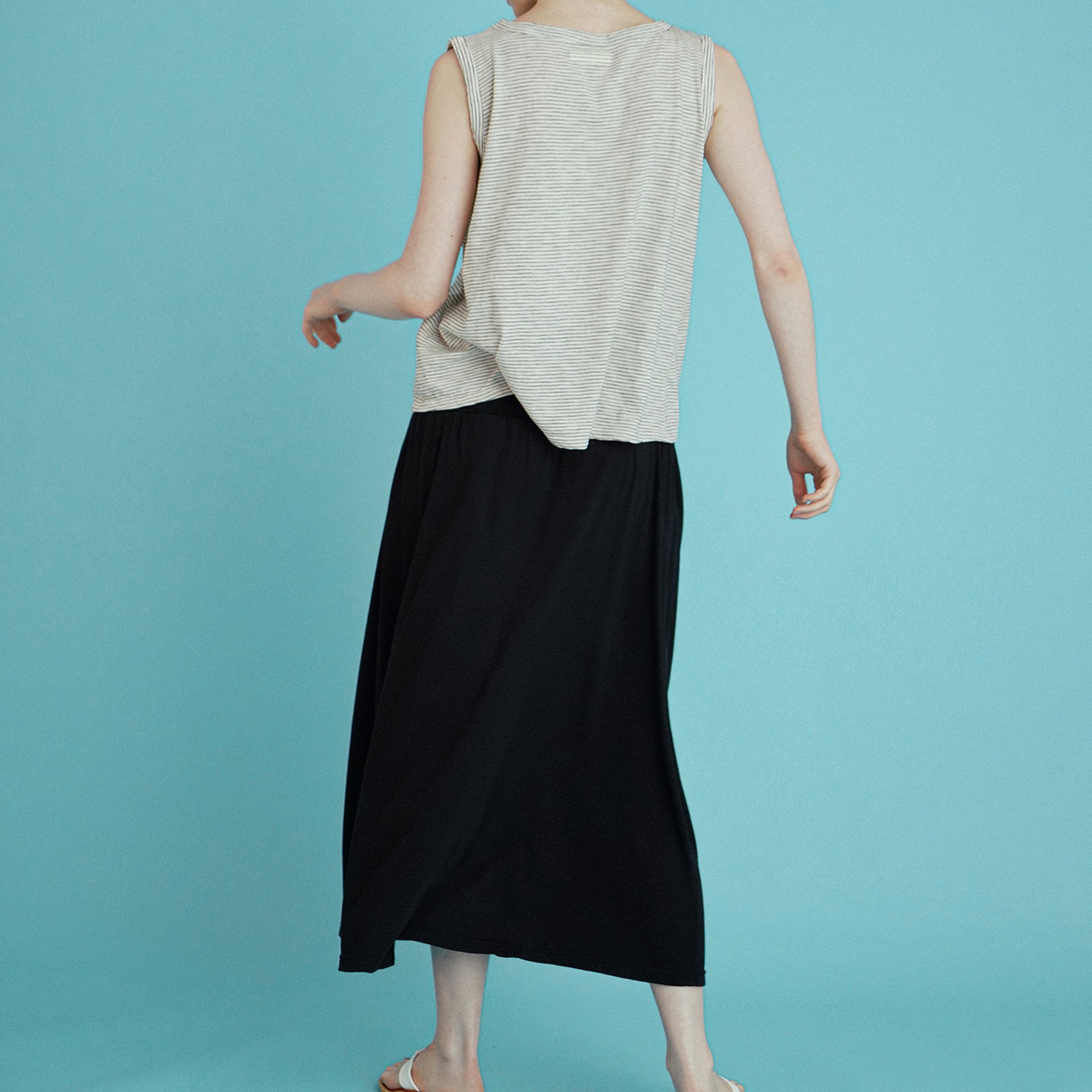아주 유연해서 찰랑이는 모달 소재에요. 촉감이 시원해서 한여름에도 쾌적하게 착용할 수 있어요.
