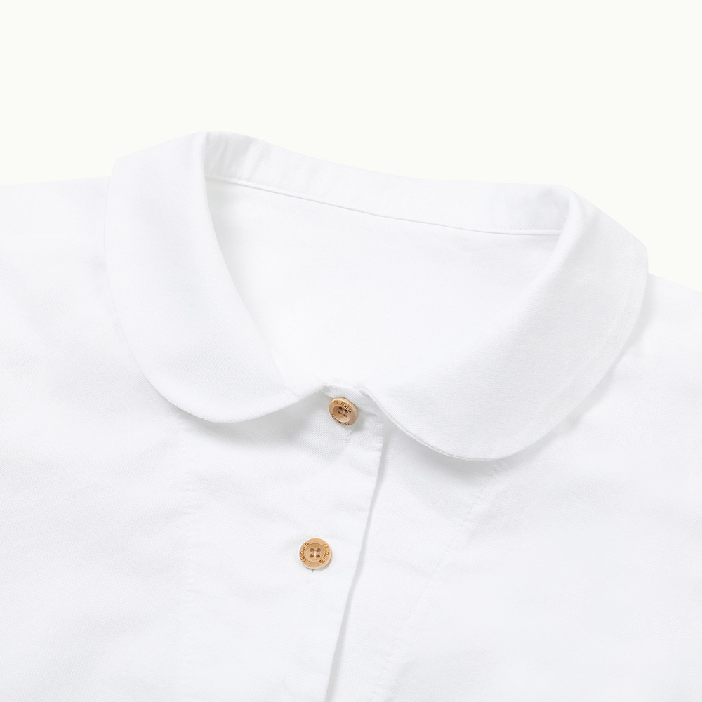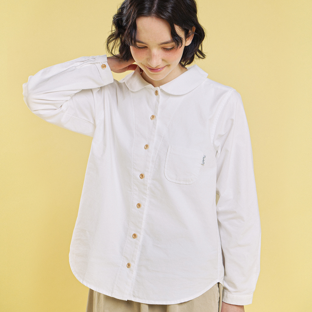 둥근 라운드 칼라는 얼굴선을 부드럽게 정리해 주며 단정한 인상을 더합니다. 작지만 실용적인 미니 포켓과 치키타 특유의 내추럴한 우드 버튼을 더해, 담백하지만 지루하지 않은 클래식한 분위기로 완성했습니다.