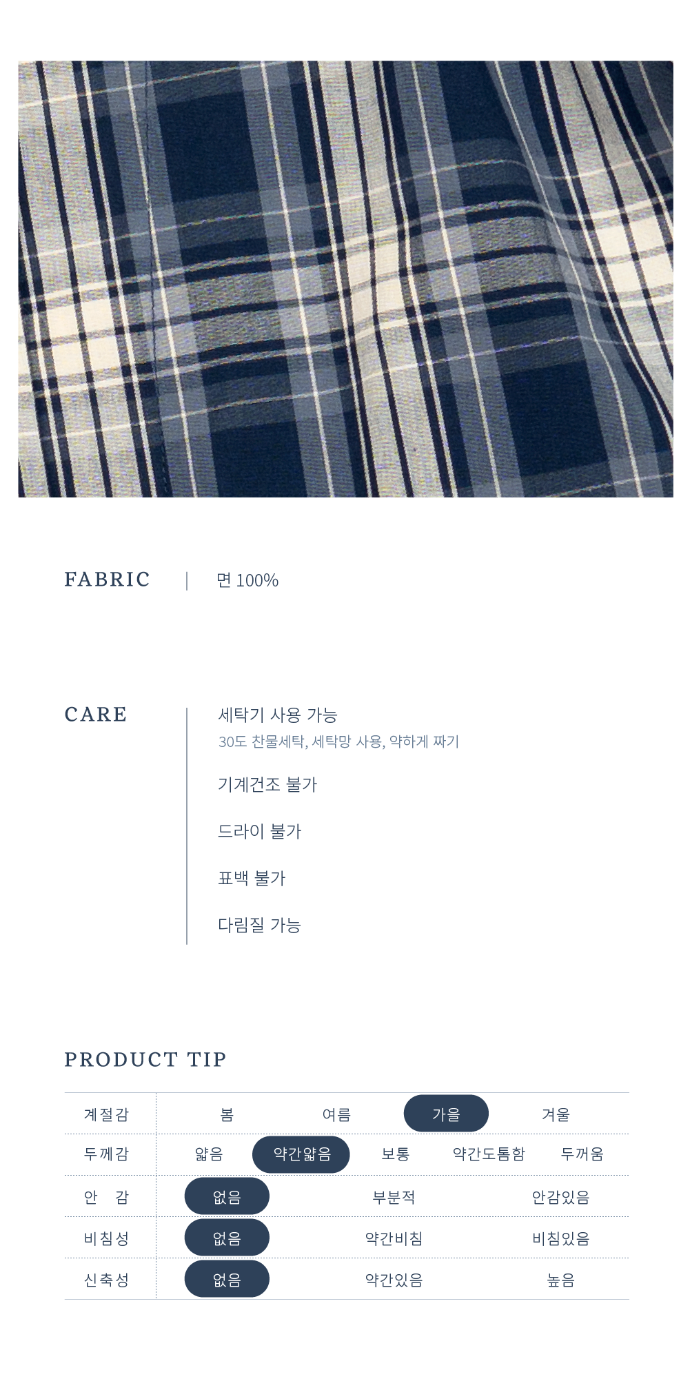 단정한 체크무늬의 코튼 소재로 촉감이 부드럽고,