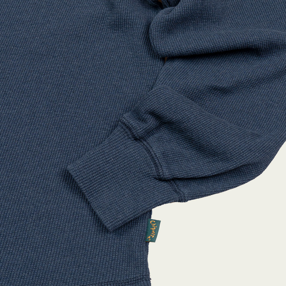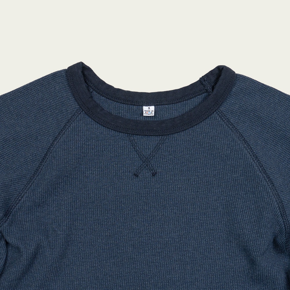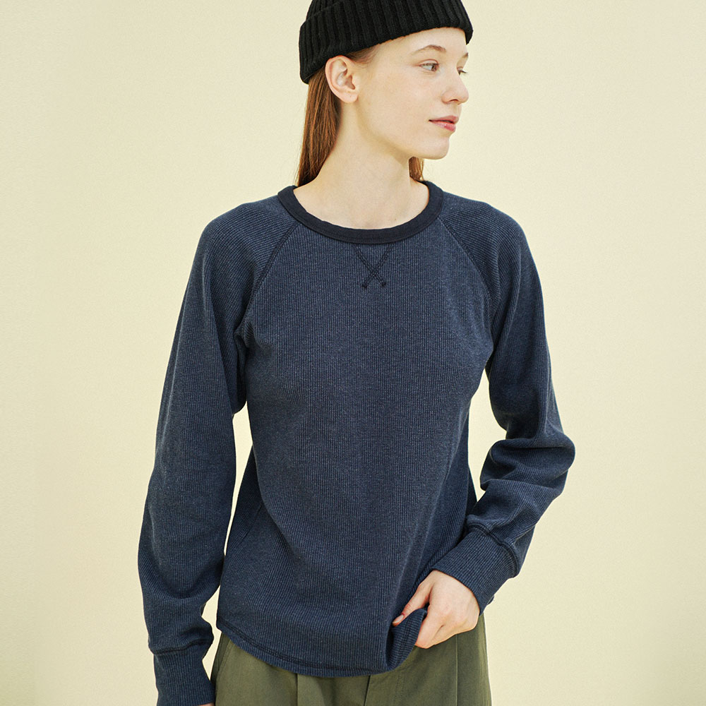 코튼 와플 래글런 긴소매 티 네이비
