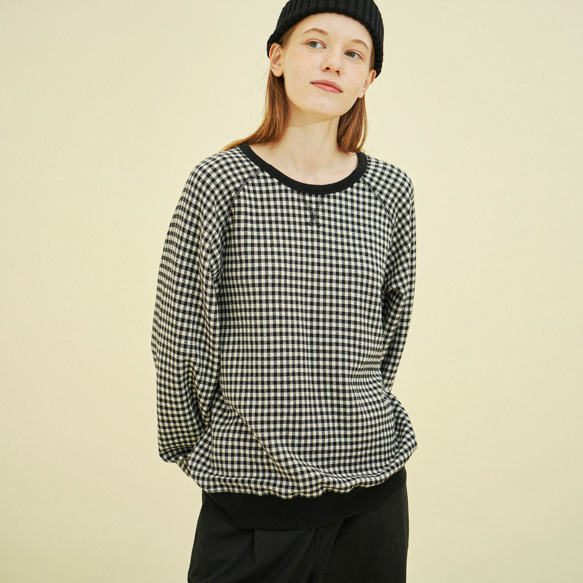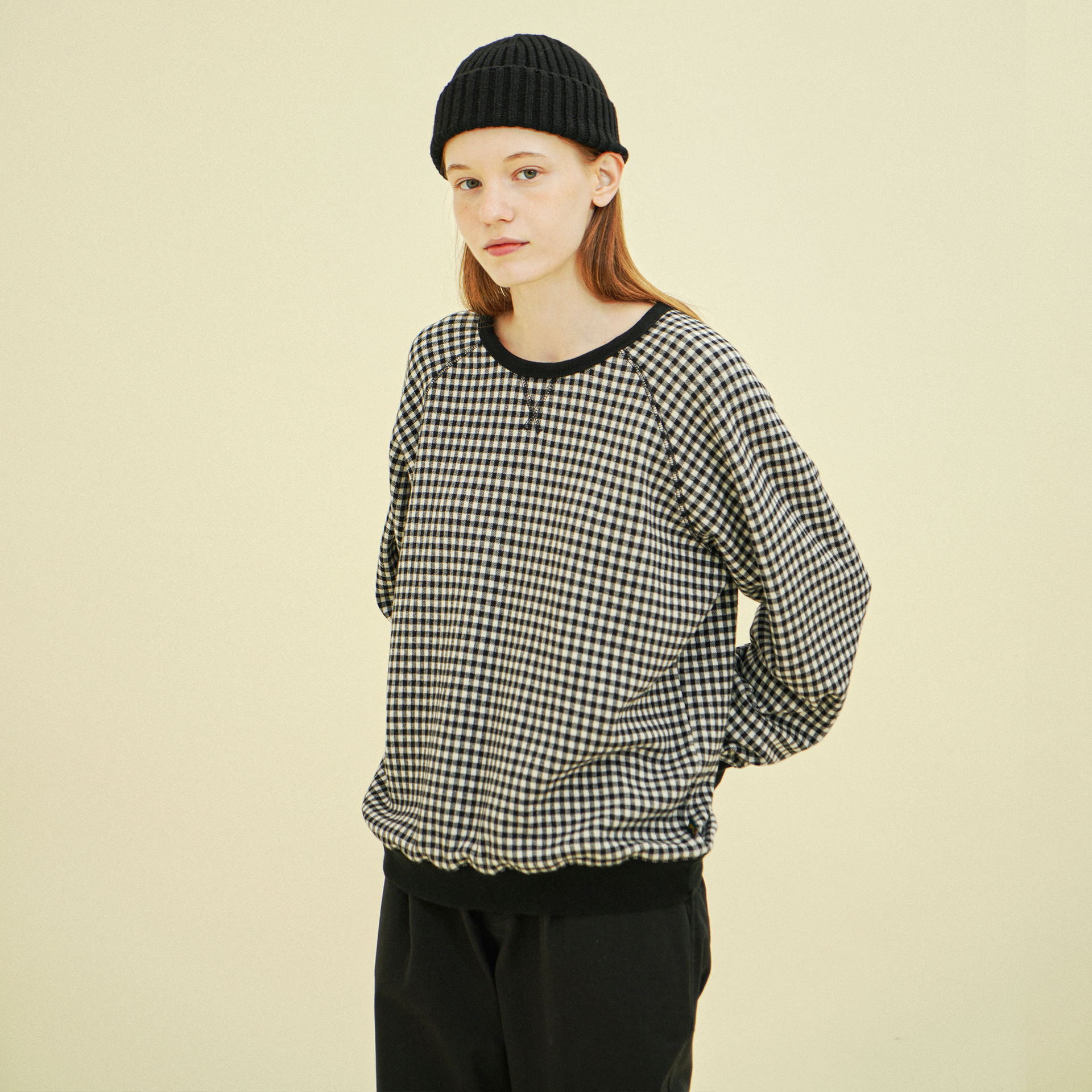 래글런 맨투맨 (체크) 블랙 243603CBK