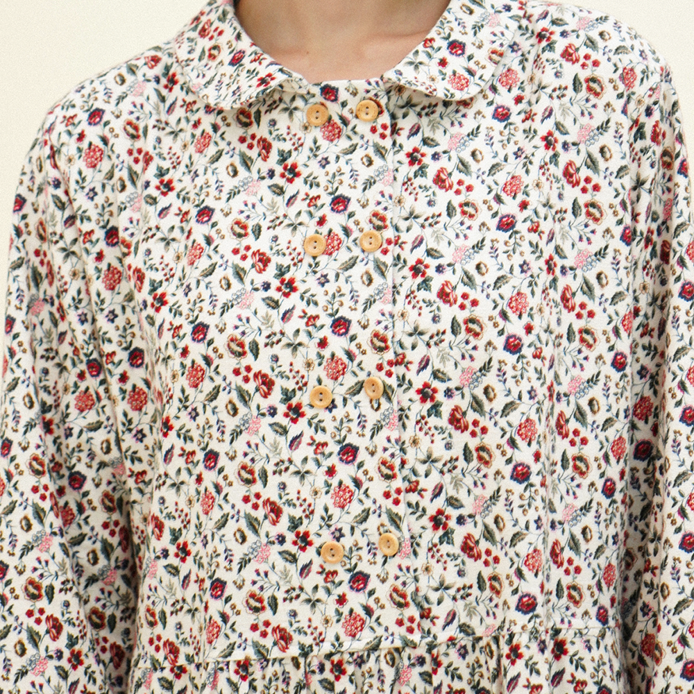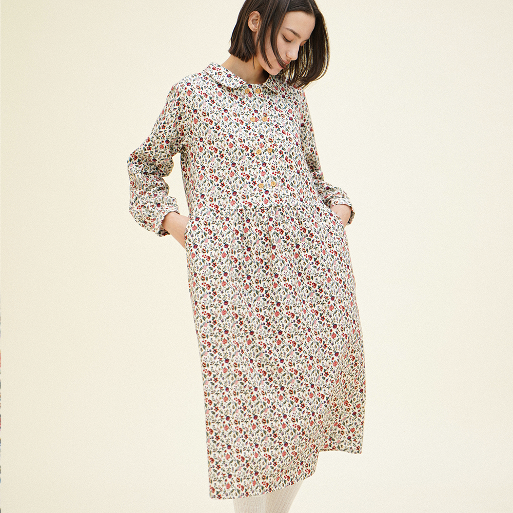 코튼 혼방 원단으로 제작된 더블 버튼 원피스는 부드럽고 따뜻하며, 우수한 보온성을 제공합니다.