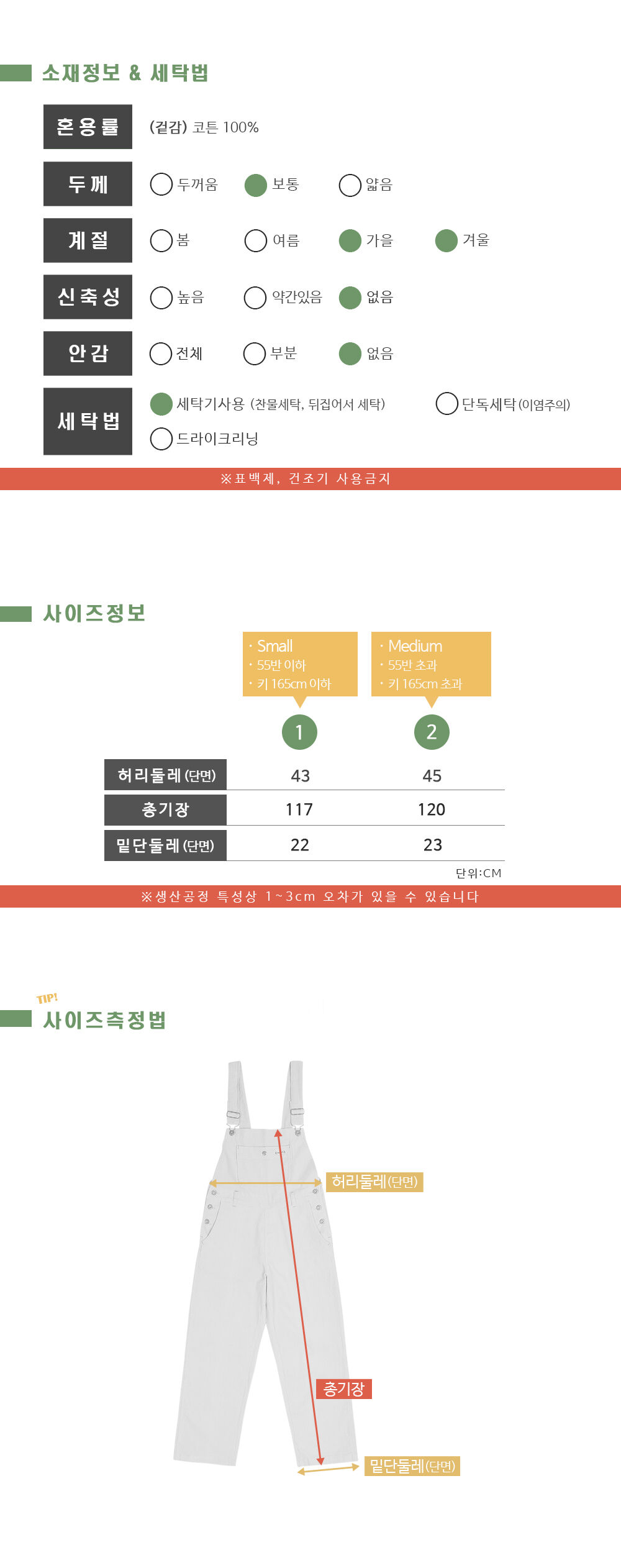 세탁방법 및 취급시 주의사항