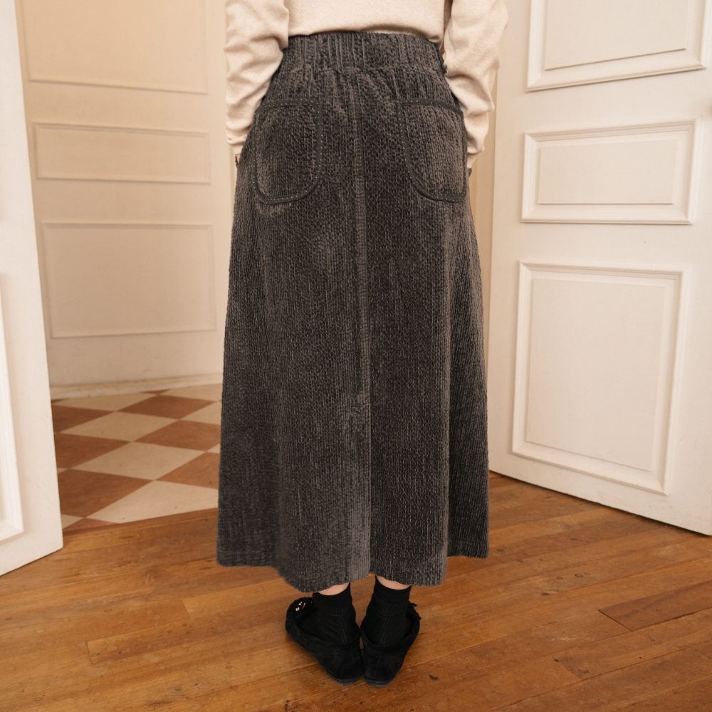오로라 코듀로이 스커트 스톤차콜