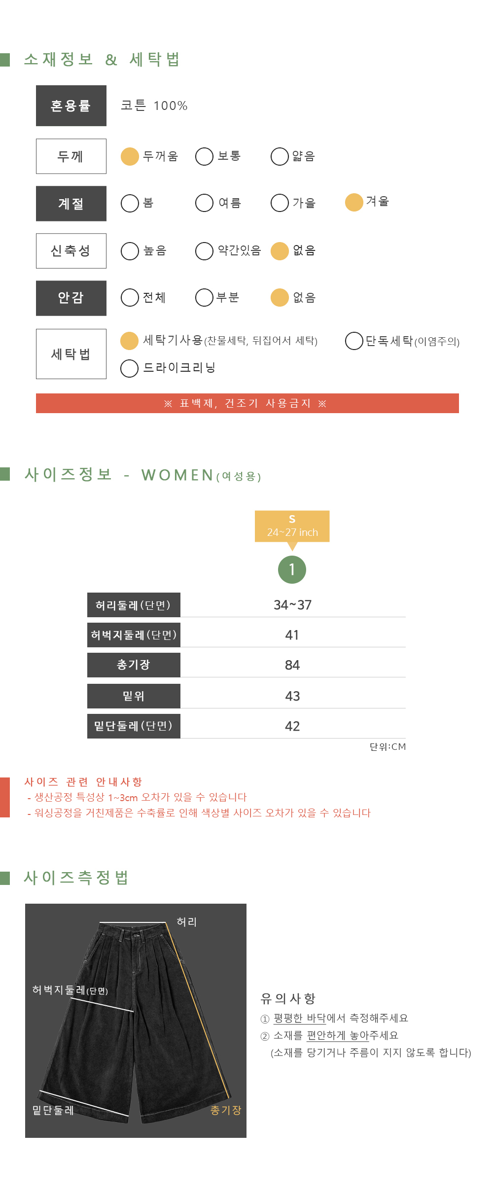 세탁방법 및 취급시 주의사항
