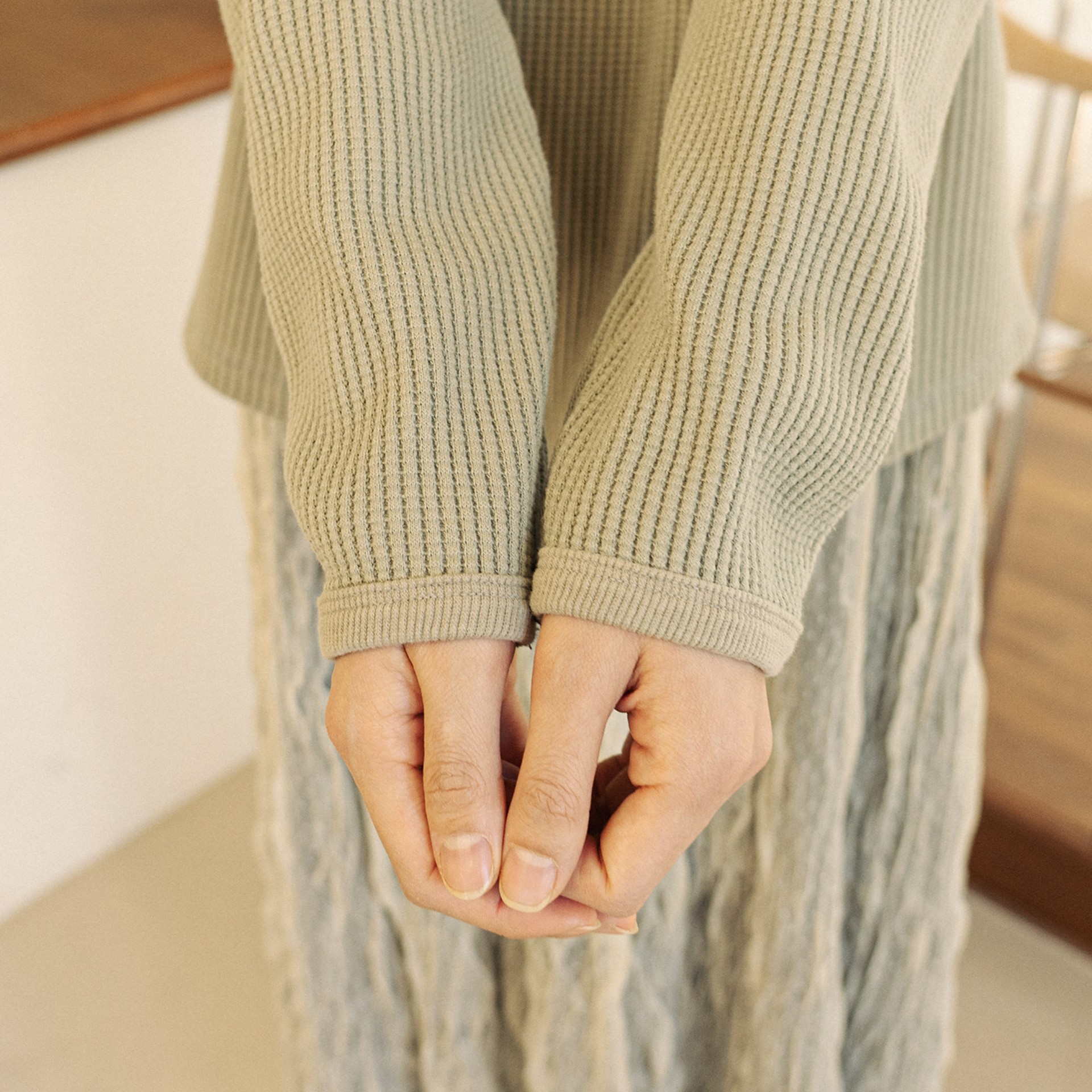 찬물 약세탁, 세탁망 사용 권장, 뒤집어 세탁 권장, 저온 기계건조, 다림질 천 덧대어 가능, 표백제 및 울세제 사용 금지