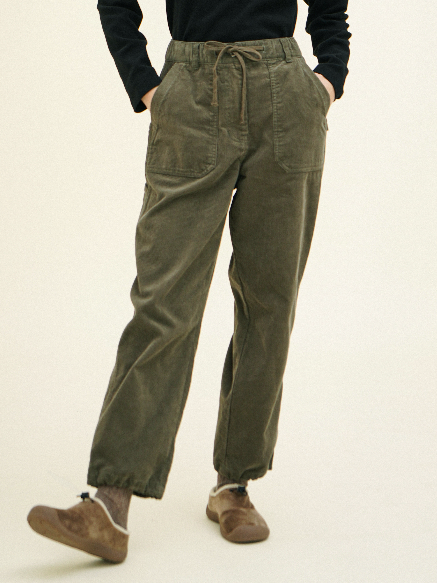 여유로운 실루엣으로 다양한 체형에 잘 어울리며, 발목 스트링으로 다양한 핏을 연출할 수 있어요.