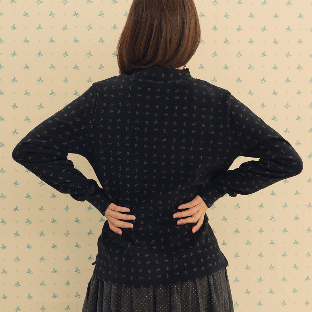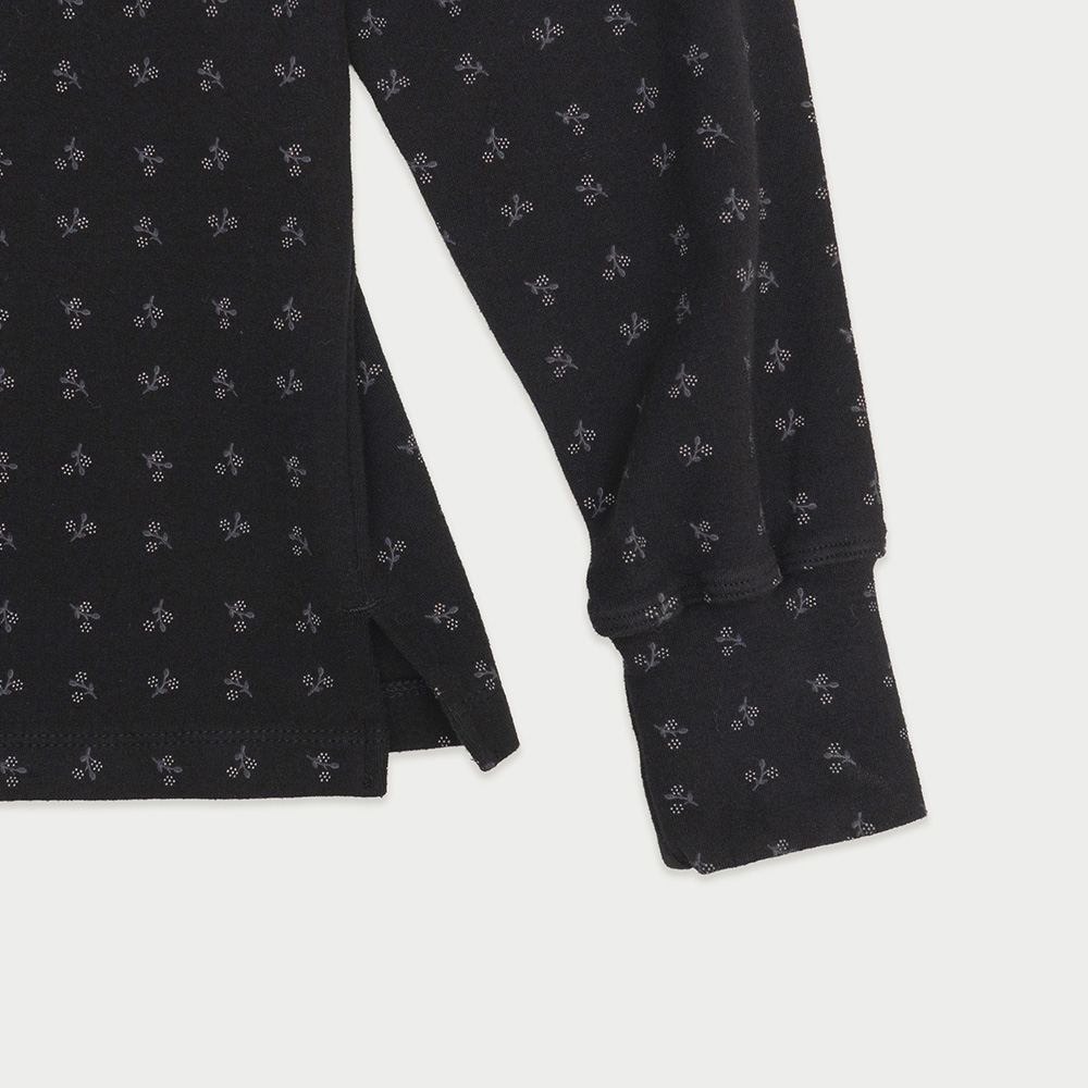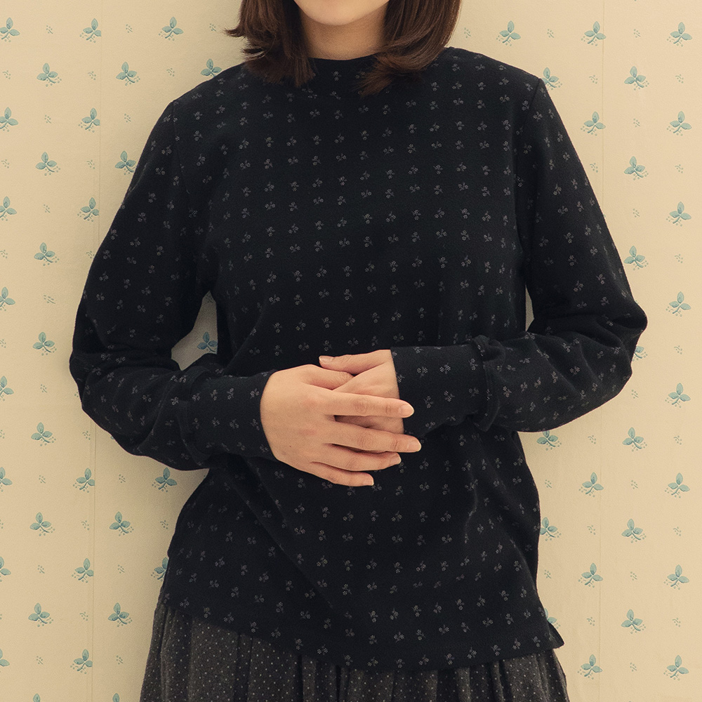 웜 코튼 플라워 하프터틀 루즈 티 블랙